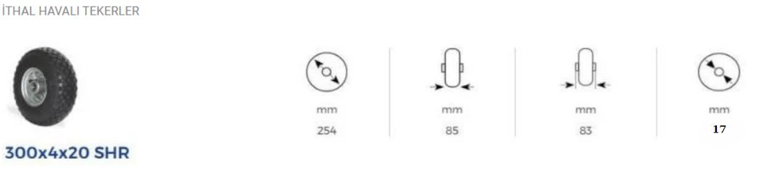 300×4 SHR SAC ÜZERİ HAVALI LASTİK KAPLI BİLYALI ELASTİK TABANLI YEDEK TEKER